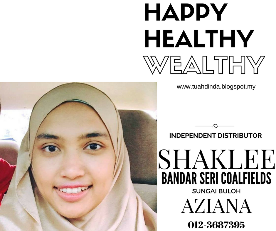 Semoga perkongsian ini bermanfaat untuk semua dan jika anda ingin mendapatkan produk Shaklee atau menyertai Shaklee boleh hubungi saya. Saya akan membantu anda turut berjaya.